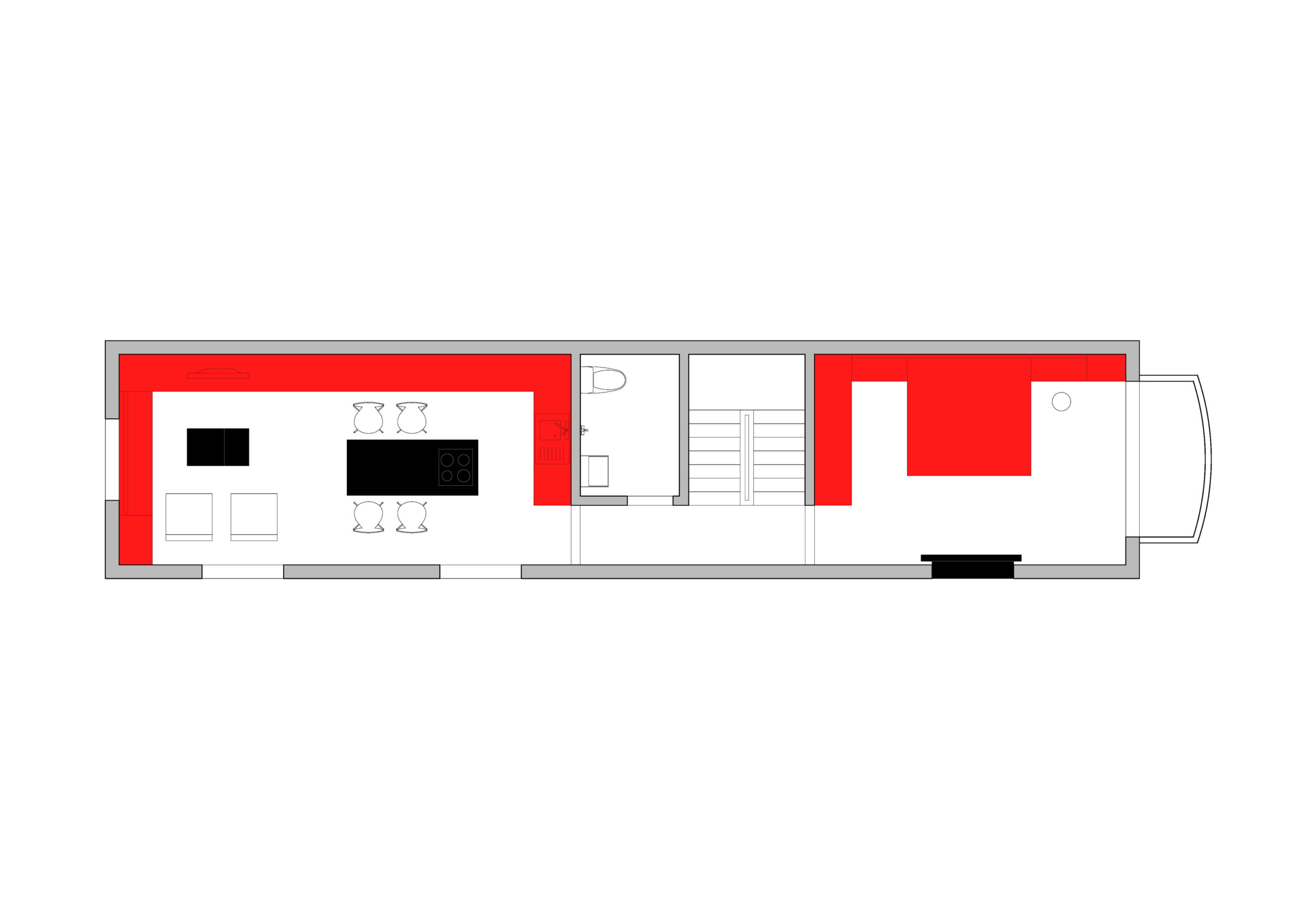 Bức tường giữa hai buồng phía trong được loại bỏ. Hai buồng này được chuyển đổi thành không gian sinh hoạt chung. Buồng phía ngoài đường trở thành phòng ngủ.