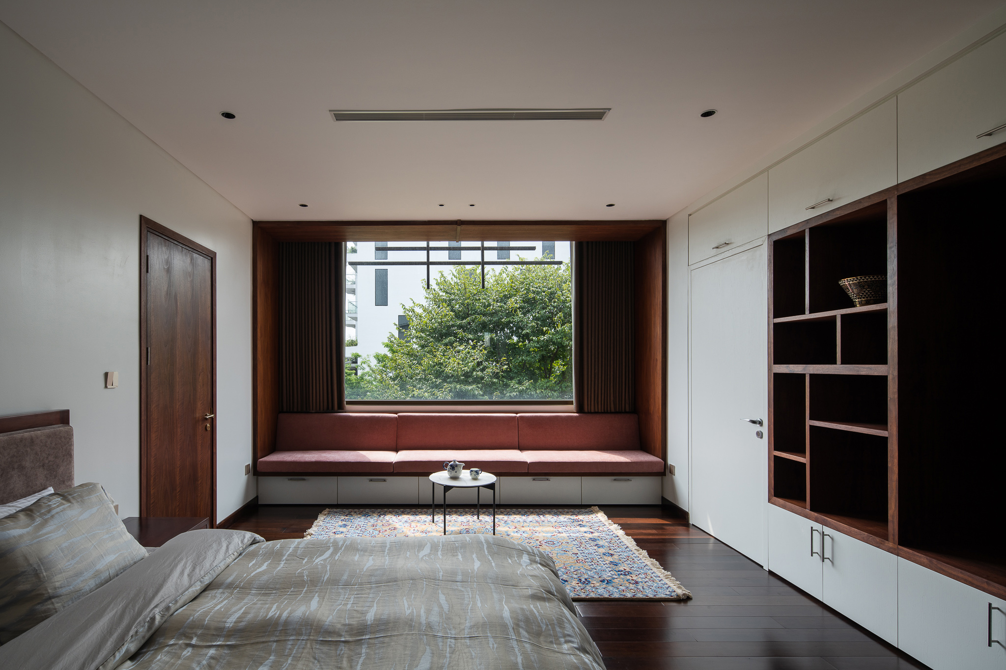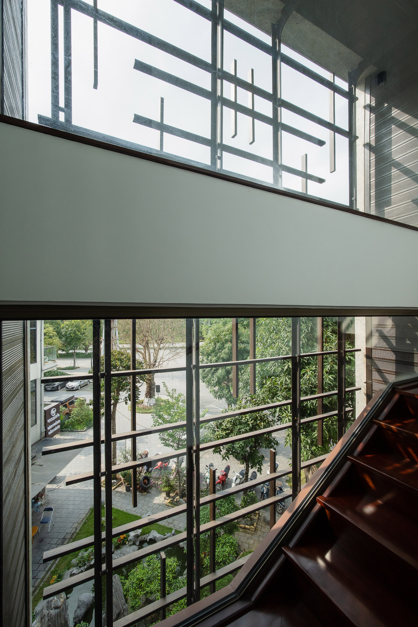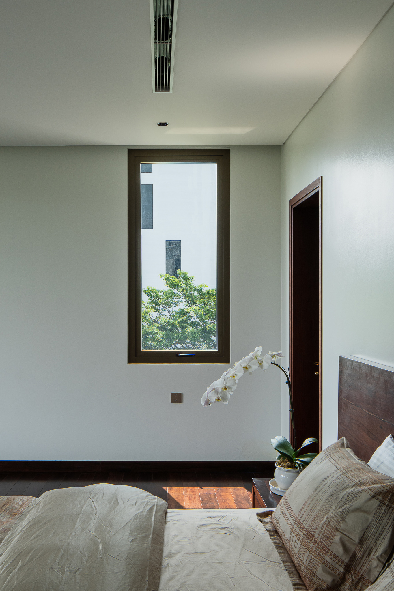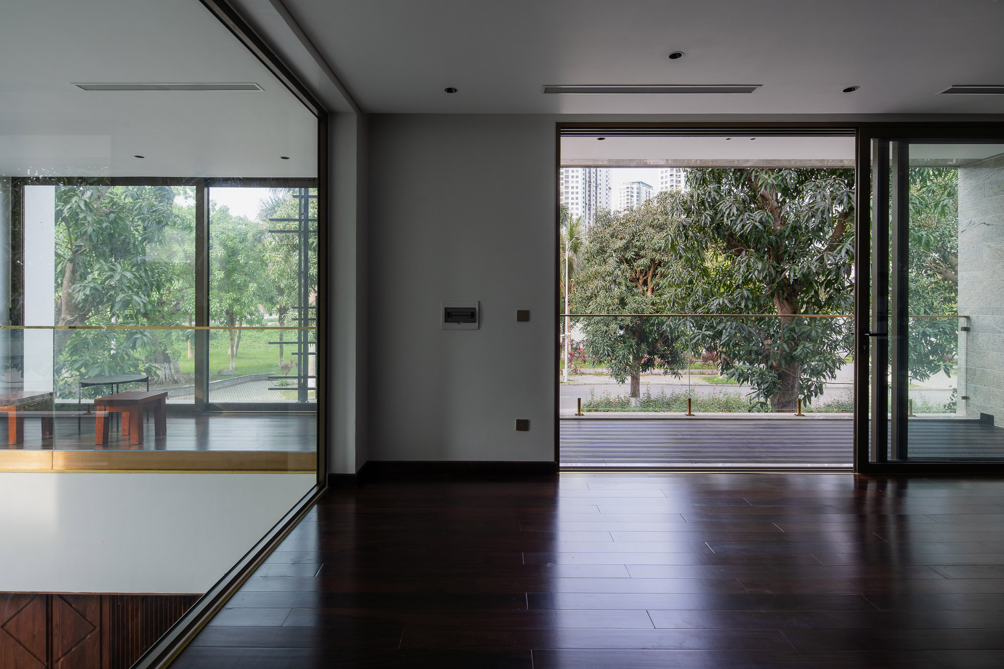 Tất cả các không gian công năng trong nhà được thiết kế đều có sự liên hệ với bên ngoài theo các điểm nhìn thú vị nhất. Chúng tôi tổ chức các điểm nhìn này không chỉ theo cách định hướng ra bên ngoài mà đồng thời đóng khung chúng với các kích thước và cấu tạo ô mở đa dạng. Điều này tạo thêm kịch tính cho mối liên hệ “trong – ngoài”, tăng thêm trải nghiệm phong phú cho người sử dụng.