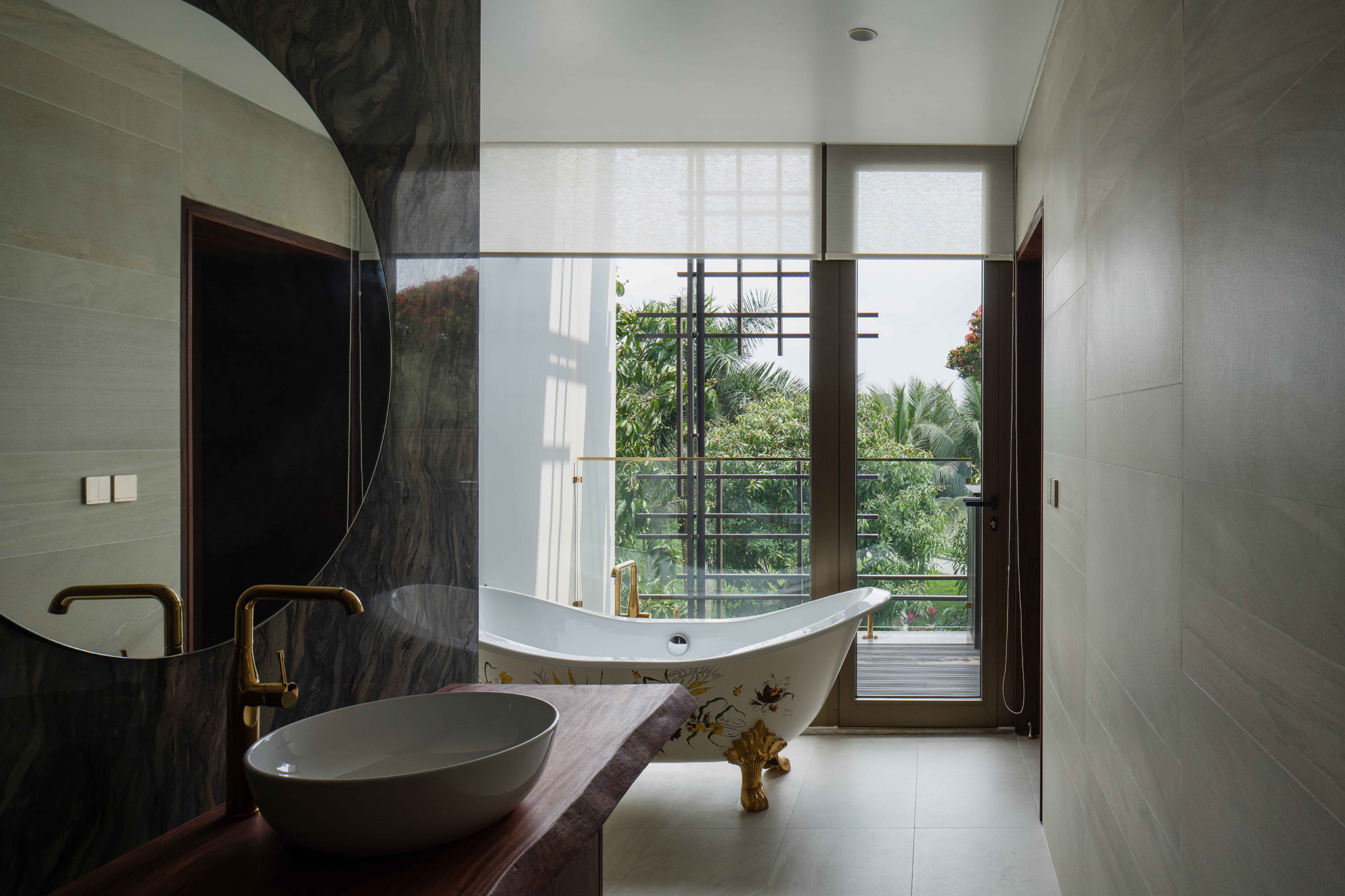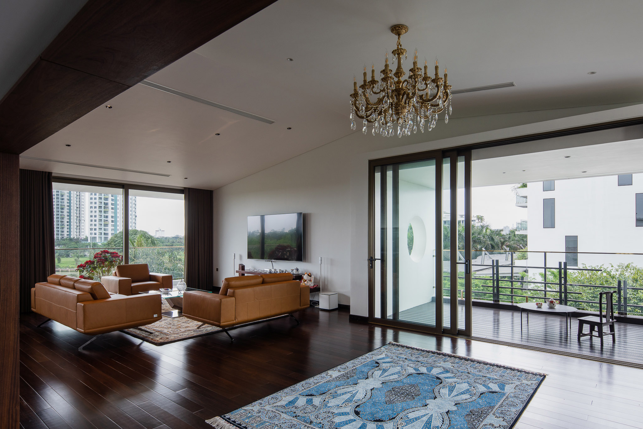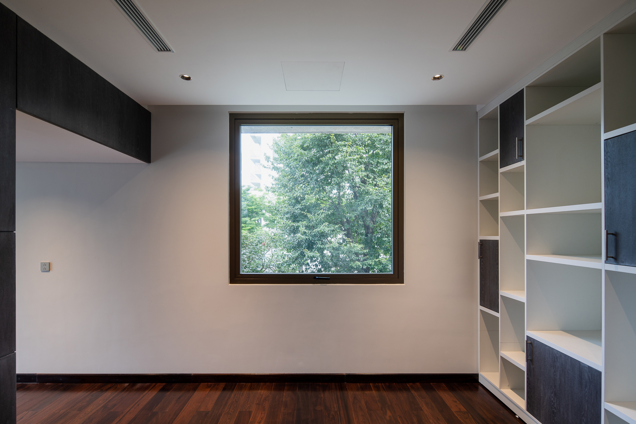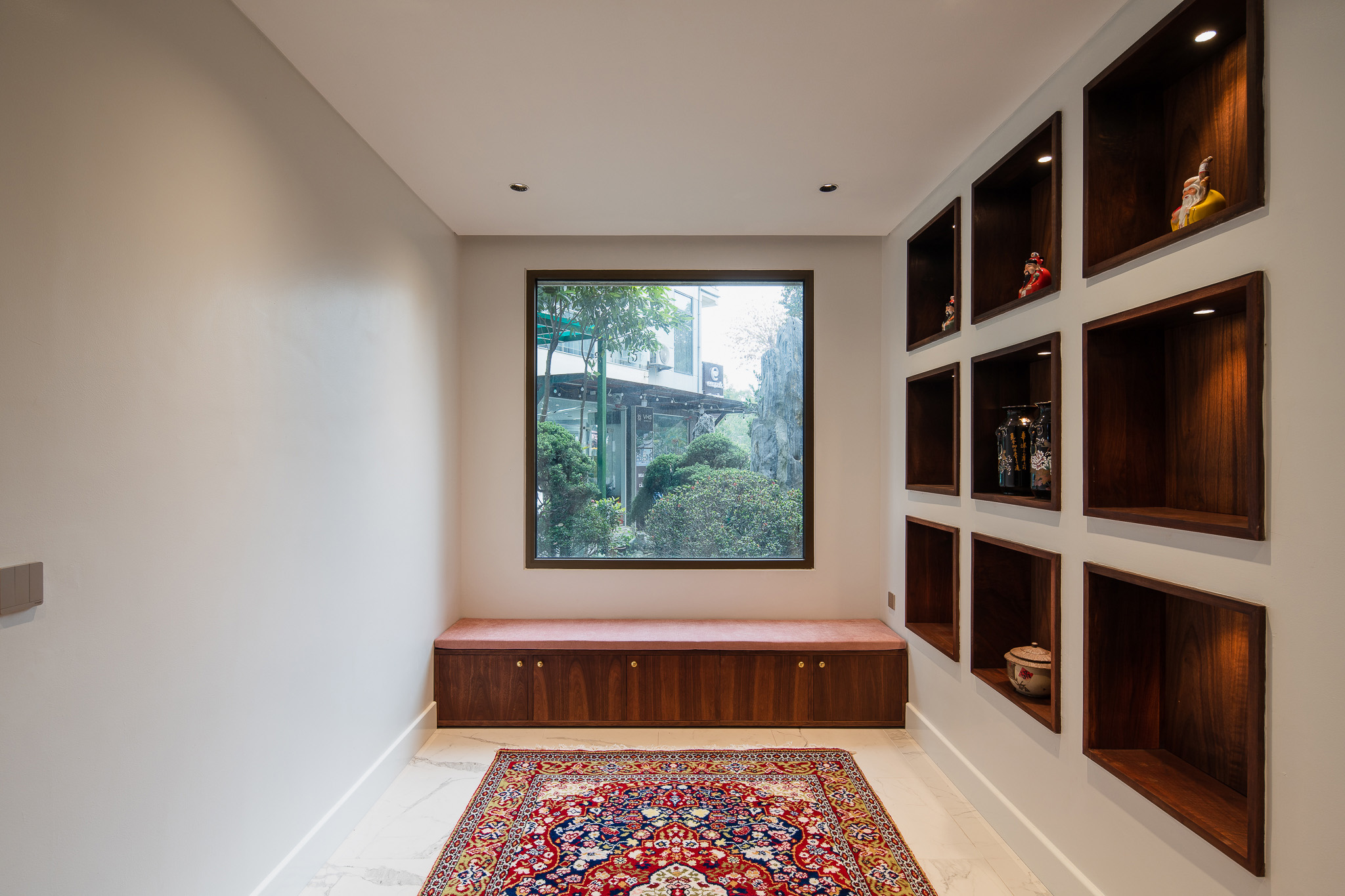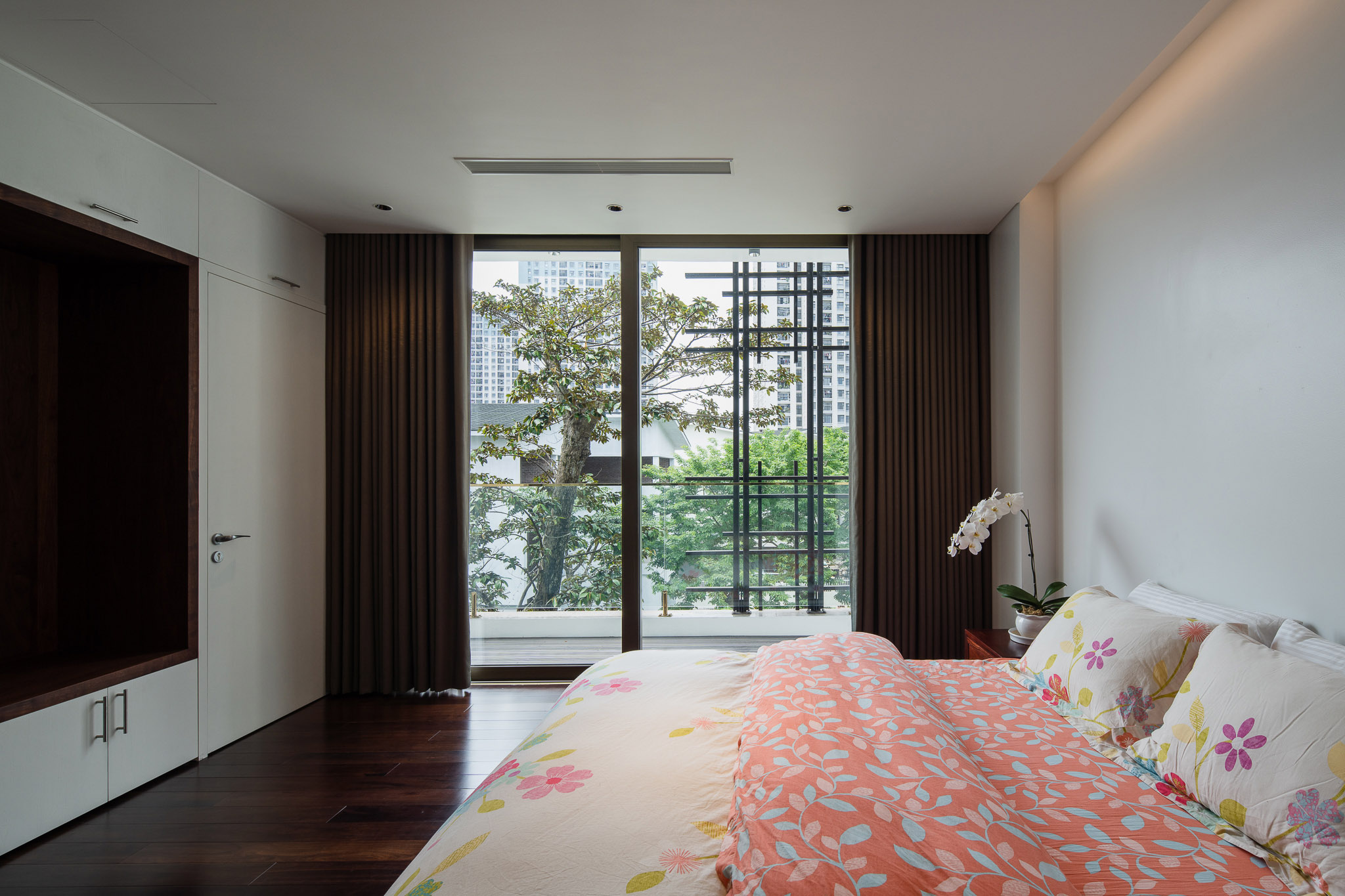 Tất cả các không gian công năng trong nhà được thiết kế đều có sự liên hệ với bên ngoài theo các điểm nhìn thú vị nhất. Chúng tôi tổ chức các điểm nhìn này không chỉ theo cách định hướng ra bên ngoài mà đồng thời đóng khung chúng với các kích thước và cấu tạo ô mở đa dạng. Điều này tạo thêm kịch tính cho mối liên hệ “trong – ngoài”, tăng thêm trải nghiệm phong phú cho người sử dụng.
